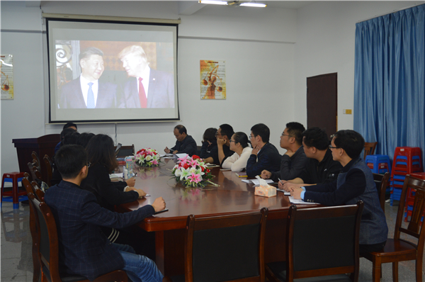 为喜迎党的十九大,全面贯彻党的思想,3月21日下午,老金沙9170登录入口教工党支部全体党员在第三教学区普照楼法律诊所开展观看《大国外交》专题片学习会议。会议由老金沙9170登录入口教工党支部书记李秋实主持。