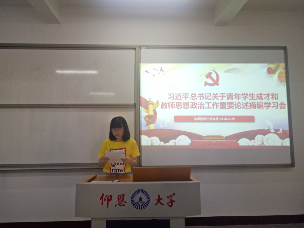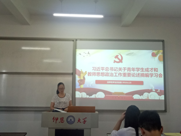 6月25日下午,老金沙9170登录入口学生党支部在仰恩大学第三校区普照楼202室开展关于青年学生成才学习讨论会。支部全体学生党员参加此次讨论会,会议由支部书记林媛主持。