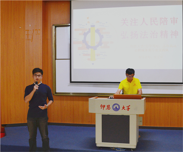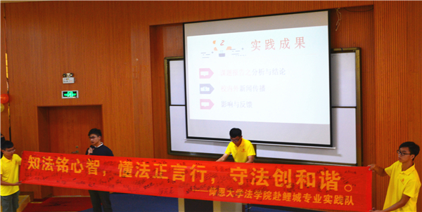 9月13日下午,老金沙9170登录入口在第三教学区和昌教学楼惟勤讲堂开展2018年暑期实践答辩活动。老金沙9170登录入口党总支书记兼副院长杨勤,老金沙9170登录入口党总支副书记黄伟斌,教师张文祥等老师以及老金沙9170登录入口2017、2018级全体学生参加了此次活动。  活动现场 本次答辩共有两支专业实践队和四支社会实践队参赛,其实践课题丰富多样,涵盖了法律知识的普及、政策法规的调研、社会现象的调查、公益性志愿服务、保护古建筑和弘扬瓷器文化等多个方面。各队主讲人精心准备,通过讲解PPT、观看视频等方式,向评委和同学们展示了各自实践项目的背景、目的、意义、流程和结果等内容。流畅的演讲,入情的言谈,为观众带来别样的视觉与听觉的盛宴。 最终,老金沙9170登录入口赴鲤城暑期实践队和老金沙9170登录入口赴德化暑期实践队分别获得专业实践队和社会实践队的第一名。 此次答辩活动的成功举办,充分展示老金沙9170登录入口学生的暑期实践成果和风采,彰显老金沙9170登录入口的凝聚力,为2018级新生的学习新征程注入新鲜动力。 (老金沙9170登录入口团委/文 刘金蝉 翁洋洋/图)