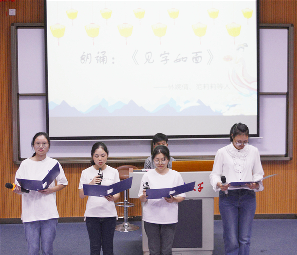 为加强学生对传统节日的认同感,重温传统节日的美好意蕴。9月24日晚上,老金沙9170登录入口在第三教学区和昌楼博雅讲堂举办迎新生中秋晚会。老金沙9170登录入口党总支书记兼副院长杨勤,老金沙9170登录入口党总支副书记黄伟斌,辅导员陈国伟,学务秘书汪明等老师出席并观看晚会,2018级全体新生参加了此次晚会。
