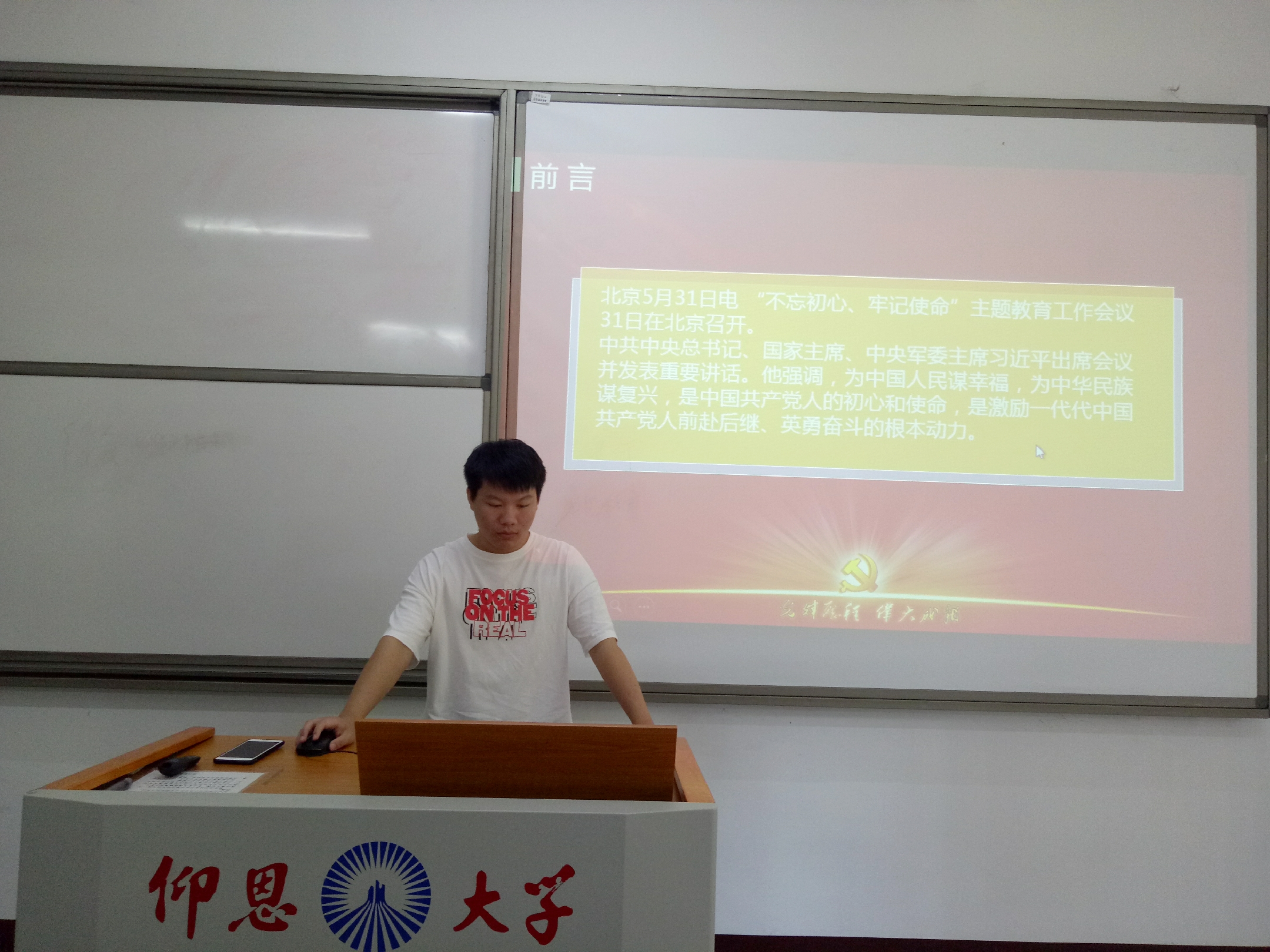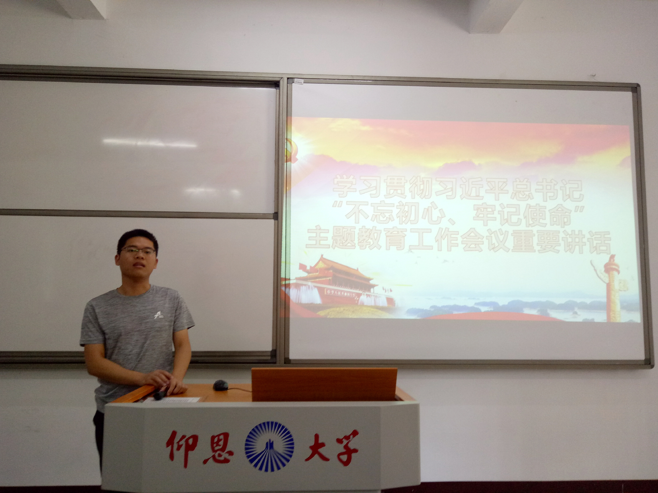 6月3日晚,老金沙9170登录入口学生党支部于仰恩大学第三校区普照楼204室开展“不忘初心、牢记使命”主题教育学习会,会议由支部书记陈国伟主持,支部全体党员参加了本次活动。