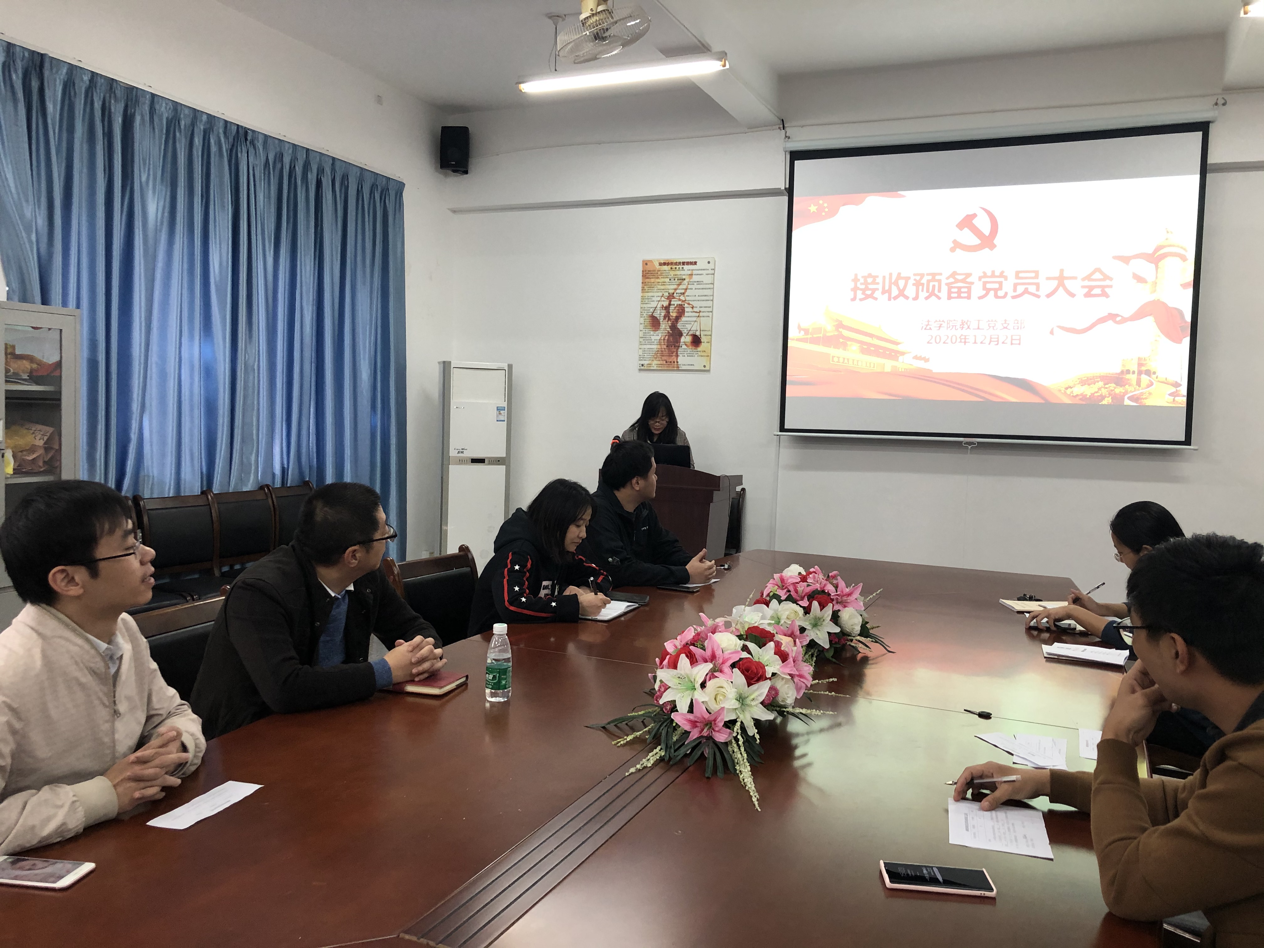 12月2日下午,老金沙9170登录入口教工党支部在仰恩大学第三教学区普照楼214室法律诊所召开党员大会,本次大会的内容是对发展对象黄晓娟同志的入党事宜进行讨论和表决,支部党员及发展对象参加了本次会议,会议由支部书记林媛同志主持。