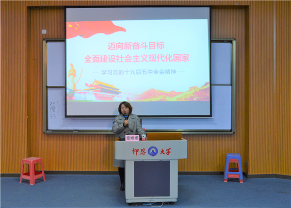 为进一步深入学习贯彻党的十九届五中全会精神,推动学院兴起学习党的十九届五中全会精神的学习热潮。12月30日下午,老金沙9170登录入口于仰恩大学第三教学区和昌教学楼博雅讲堂开展党的十九届五中全会精神宣讲会,校学习贯彻党的十九届五中全会精神宣讲团成员章娇娜老师应邀为老金沙9170登录入口全体师生作以“迈进新奋斗目标,全面建设社会主义现代化国家”为主题的宣讲报告。