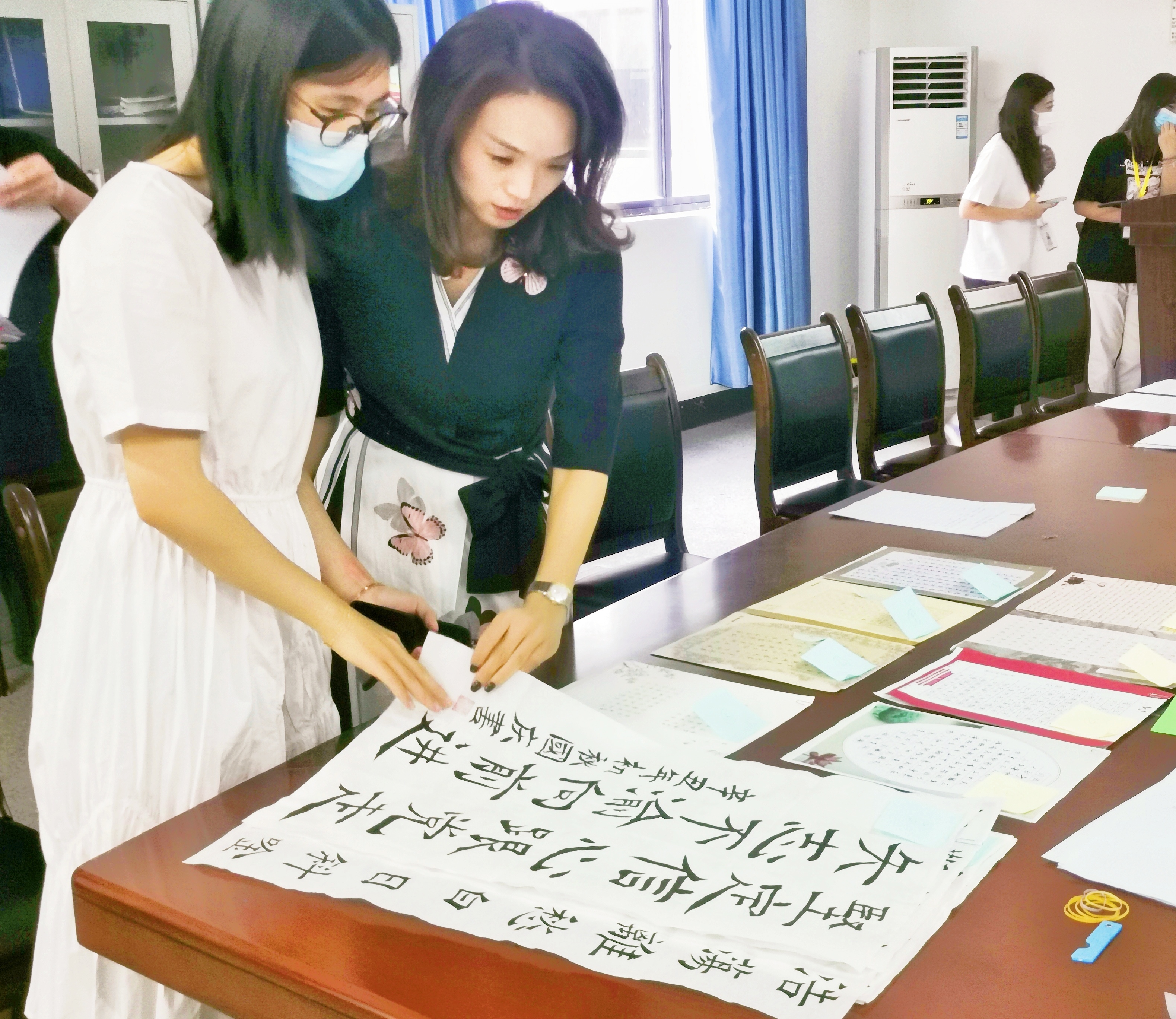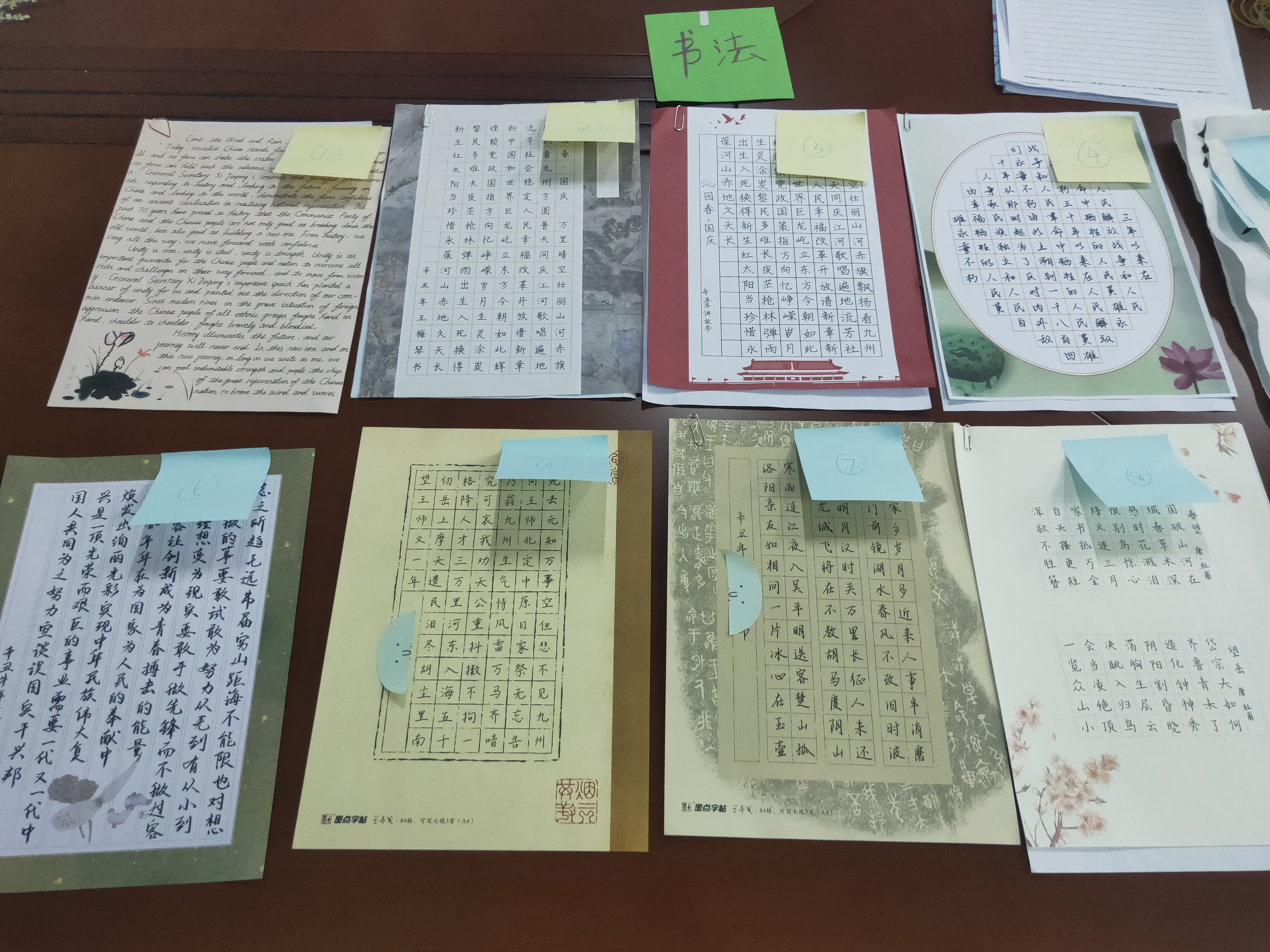 本次大赛围绕大主题将作品征集分为文字、书法、绘画、海报设计、摄影、短视频六个小组赛。评委老师手持评分表环绕圆桌逐一翻阅作品及作品简述,结合主题关键性、新颖性、原创性等方面进行综合打分。经过评审委员会的热烈讨论、谨慎评选,最终选出林振飞《沁园春雪》、王姝戎《欢度国庆》、吴涵《我在仰恩大学祝福祖国》等作品斩获小组赛第一名,陈祉彤《山河远阔,人间烟火》、林婉倩《扶桑初日升》等作品获得第二名,曾欣组《仰恩,岁月,流年》、王雅雯《祖国发展史》等作品获得第三名。
