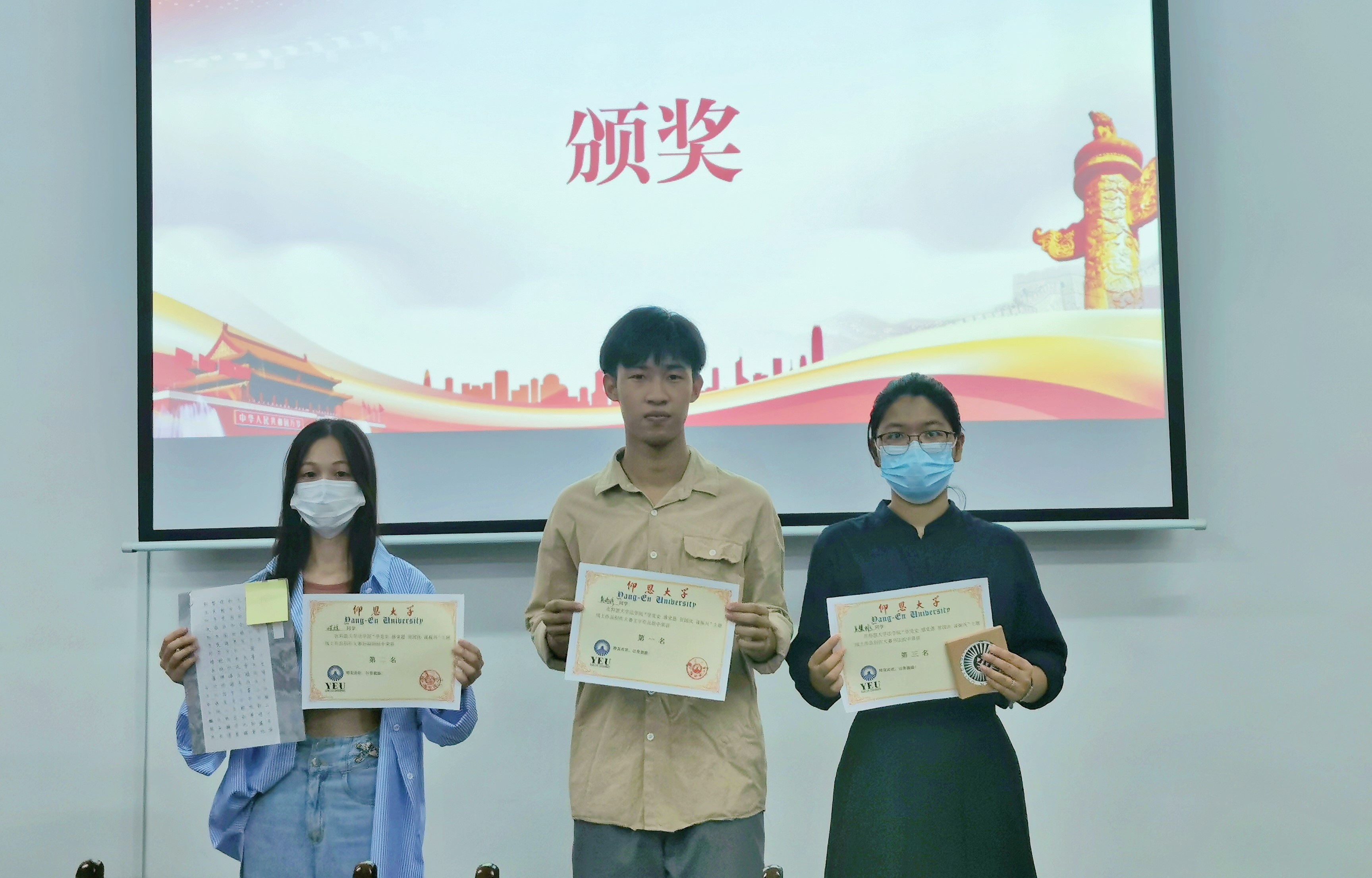 今年是中国共产党成立100周年,值此国庆之际,泉州疫情防控的关键时期,我院为丰富节日活动,活跃校园文化氛围,弘扬中华传统文化,开展本次主题为“学党史感党恩 贺国庆 谋振兴”的线上图文作品征集活动。10月3日下午,本次活动在普照楼法律诊所顺利落下帷幕并举行颁奖仪式,老金沙9170登录入口党总支书记杨勤老师和老金沙9170登录入口辅导员李斯滢老师出席本次活动担任评委。