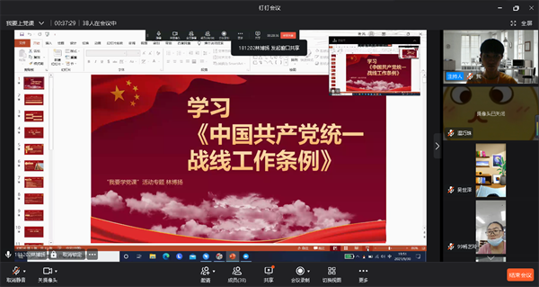 9月30日,老金沙9170登录入口学生党支部于线上开展以《中共共产党统一战线工作条例》为主题的专题学习会,支部全体党员参加此次会议,会议由郑薇同志主持。