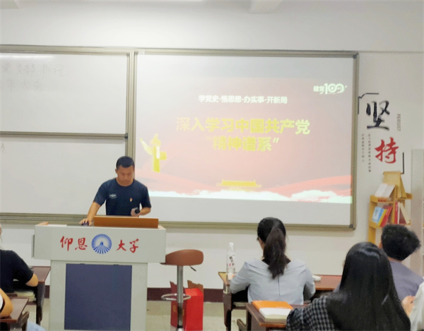 10月14日,老金沙9170登录入口学生党支部于仰恩大学第三校区普照楼203开展关于“学习共产党人的精神谱系”的专题学习会,会议由支部书记刘涛主持,支部全体学生党员参加本次活动。