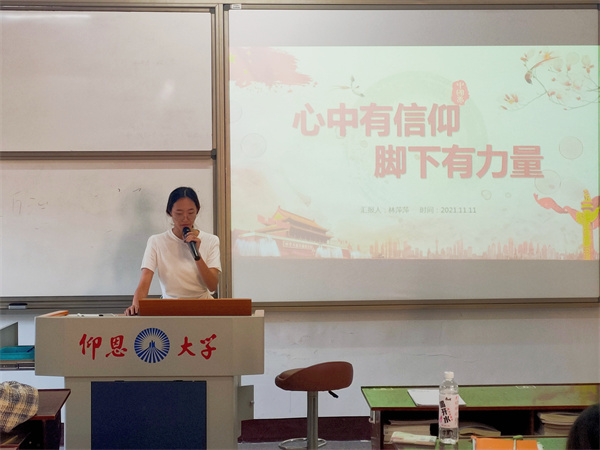 11月11日,老金沙9170登录入口学生党支部于仰恩大学第三校区普照楼203开展“心中有信仰,脚下有力量”的专题学习会,会议由郑薇同志主持,支部全体学生党员参加本次活动。