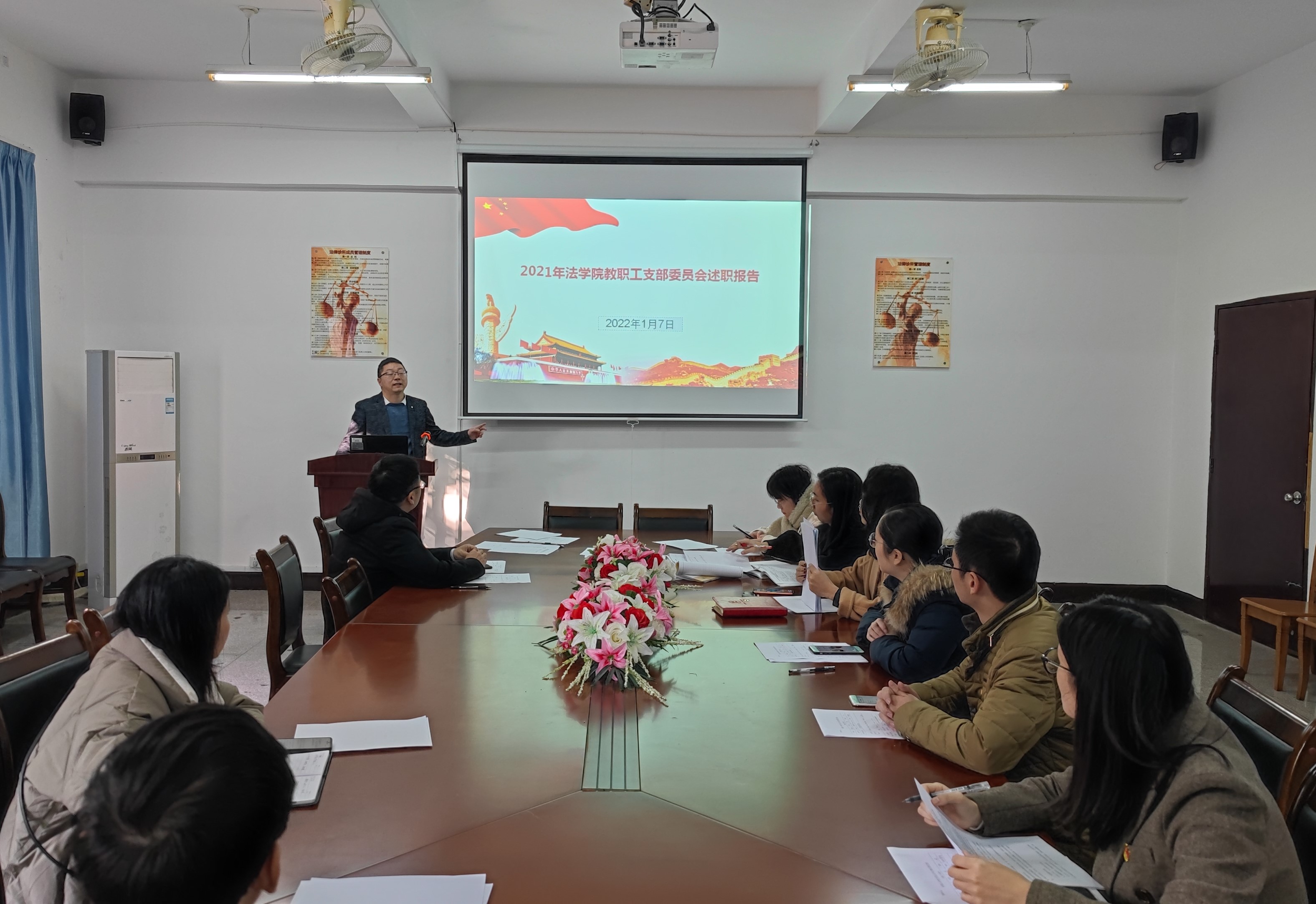 1月7日下午,老金沙9170登录入口党总支于仰恩大学第三校区普照教学楼法律诊所召开2021年度基层党支部述职会议,老金沙9170登录入口全体教师党员参加了此次活动,会议由老金沙9170登录入口党总支书记兼副院长杨勤主持。