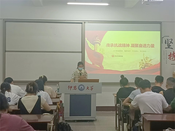 9月19日,老金沙9170登录入口学生党支部于仰恩大学第三校区普照楼203开展以“传承抗战精神,凝聚奋进力量”为主题的专题学习会,会议由罗宇航主持,支部全体党员到场参加。