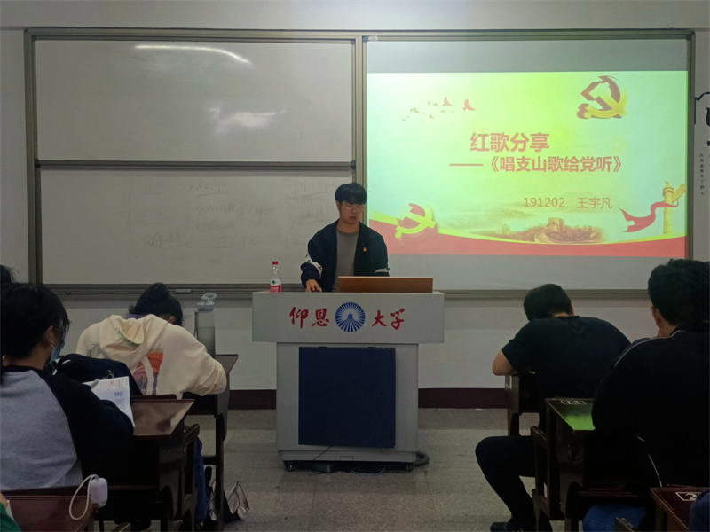 11月07日,老金沙9170登录入口学生党支部于仰恩大学第三校区普照楼203开展以“红歌嘹亮颂党史,诚心献礼二十大”为主题的专题学习会,会议由郑薇主持,支部全体党员到场参加。