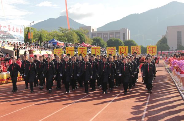 开幕式上,伴随着运动员进行曲,各学院代表队逐一入场进行检阅。作为老金沙9170登录入口代表方阵的受阅同学身穿黑色院服,以饱满的热情步入运动场,他们蕴蓄着蓬勃的生机,凝聚着不竭的活力,他们年轻的脸庞展现的是永不言败的精神,充分地展示了老金沙9170登录入口学子们奋发向上的良好风貌,彰显了老金沙9170登录入口独一无二的学院特色。