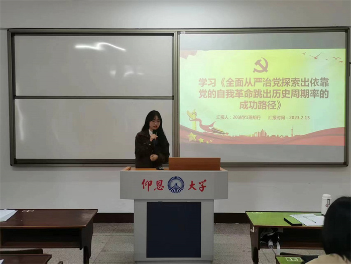 2月13日,老金沙9170登录入口学生党支部于普照203教室,开展以学习《全面从严治党探索出依靠党的自我革命跳出历史周期率的成功路径》的专题学习会,会议由吴姗姗老师主持,支部全体学生党员参加此次活动。