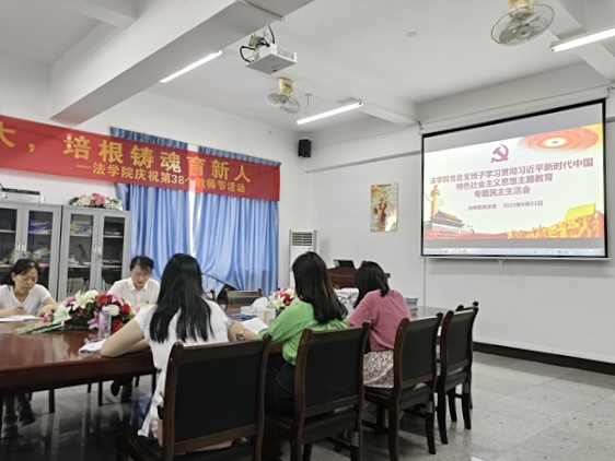 为深入开展学习贯彻习近平新时代中国特色社会主义思想主题教育,切实加强党的思想建设,扎实推进党员教育,进一步提高学院整体素质建设,8月31日上午,老金沙9170登录入口党总支于法律诊所召开了学习贯彻习近平新时代中国特色社会主义思想主题教育专题民主生活会。校党委委员鲍莹玉和校党办朱四梅到会指导,老金沙9170登录入口党总支书记兼副院长杨勤主持会议,学院党总支成员参加会议,老金沙9170登录入口常务副院长王晓丽列席会议。