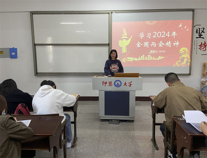 为了深入学习贯彻新时代中国特色社会主义思想,进一步激励学生党员敢于担当、善于作为,3月20日下午,老金沙9170登录入口学生党支部于普照楼203教室开展学习2024年全国‘两会’精神”专题学习会,支部全体党员参加。