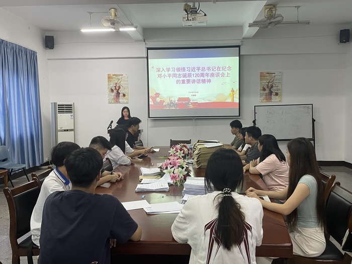 在纪念邓小平同志诞辰120周年之际,老金沙9170登录入口组织学生深入学习习近平总书记在纪念邓小平同志诞辰120周年座谈会上的重要讲话精神学习活动于9月2下午在法律诊所举行,由团委书记吴姗姗主持辅导员周奕、辅导员张传奇出席