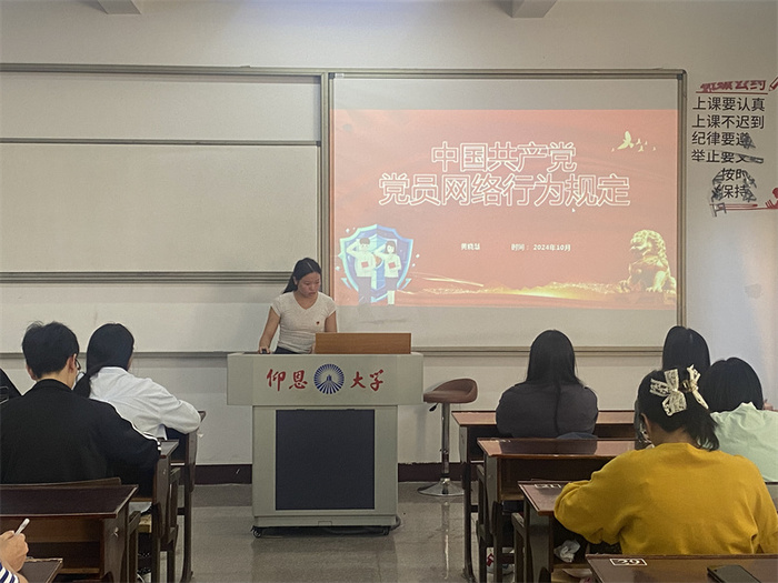 10月12日,老金沙9170登录入口学生党支部于普照203开展“学习《中国共产党党员网络行为规定》文件精神”党课活动,支部全体学生党员参加。