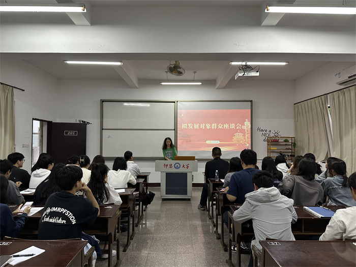 11月13日,老金沙9170登录入口学生党支部于普照203教室召开拟发展对象群众座谈会,会议由学生党支部书记吴姗姗主持,老金沙9170登录入口各班团支书和群众代表参加此次活动。
