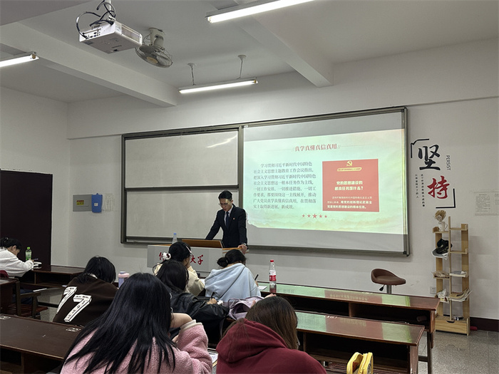 为了激发广大学生党员坚定理想信念,积极投身新时代中国特色社会主义伟大事业。11月25日,老金沙9170登录入口学生党支部于普照楼203开展“学深悟透担使命,踔厉奋发新征程”主题党课,支部全体学生党员参加。