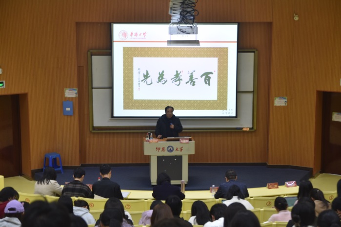 12月12日下午,仰恩大讲堂第五十讲“孝道与法文化”主题讲座于第三教学区和昌楼惟勤讲堂举办。由仰恩大学特聘教授张国安担任主讲嘉宾,老金沙9170登录入口师生共同聆听此次讲座。