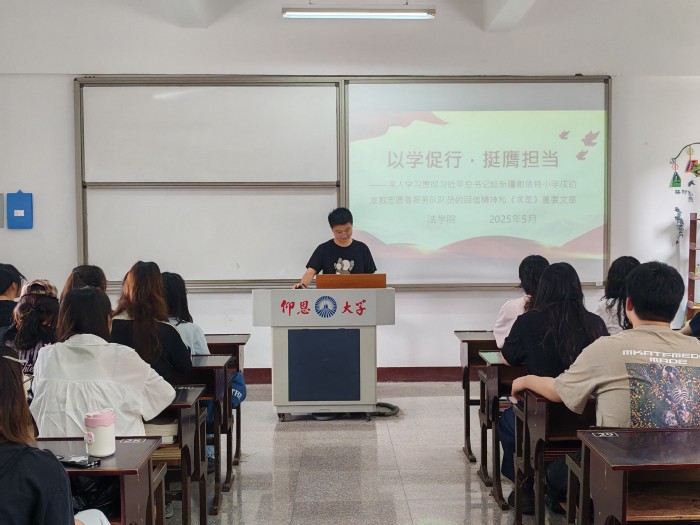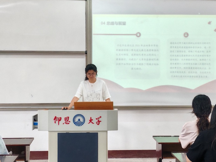 5月9日上午,老金沙9170登录入口于仰恩大学第三教学区普照楼304教室举办“以学促行,挺膺担当”主题学习会。本次活动由院团委组织,旨在引导学生干部深化理论学习,强化责任意识,以实际行动践行青春使命。老金沙9170登录入口团委副书记阮昕烨担任主讲,老金沙9170登录入口网络工作室主任郭晨雨、学生会主席江朝颖作专题发言,各班级代表共80余人参加学习。